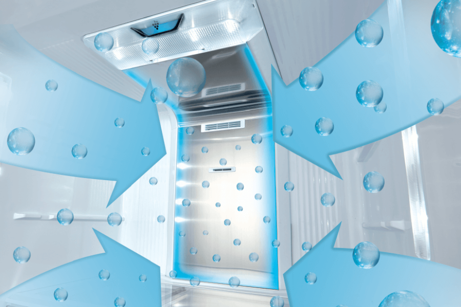 - Une plaque d'aluminium située au fond de la cavité refroidie à 0°C, qui apporte continuellement de l’air frais et humide dans le compartiment, limitant ainsi le dessèchement des aliments