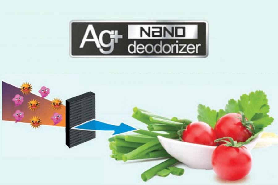 Le désodorisant Nano est un filtre placé à l'arrière du compartiment du réfrigérateur qui disperse des nano-molécules piégeant les molécules odorantes.
